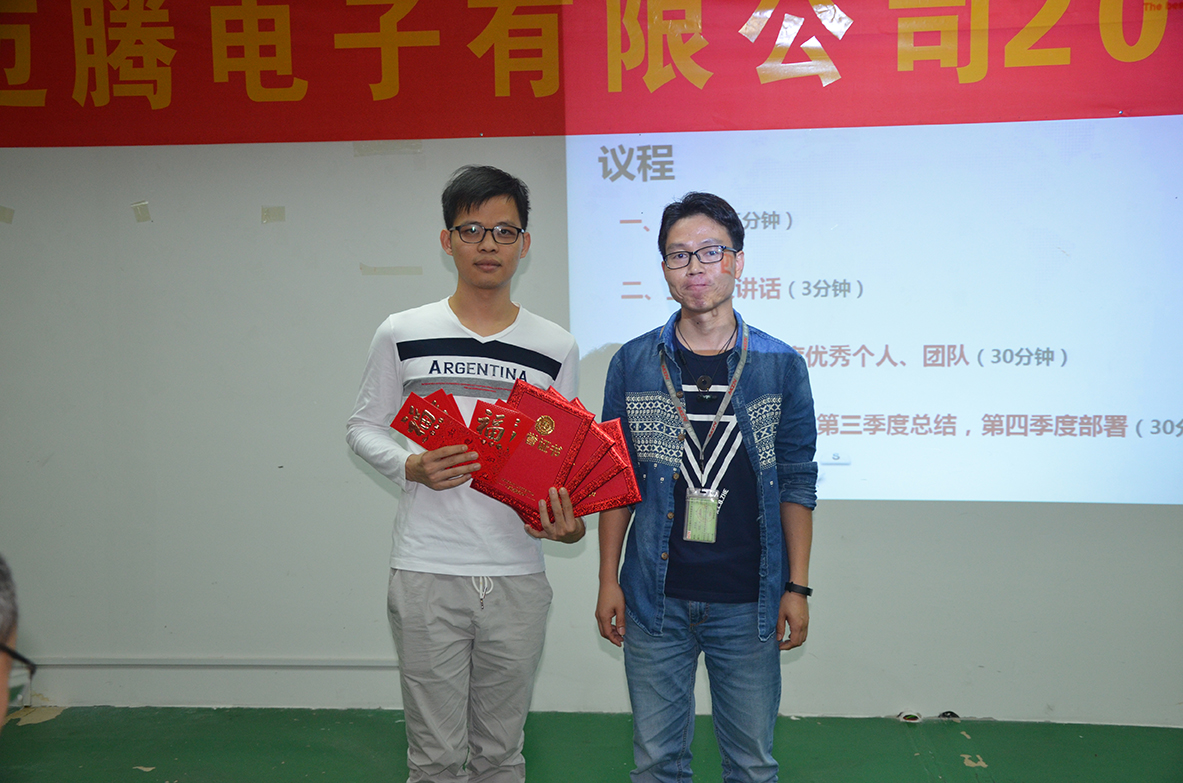 11月14日,bb贝博Ballbet电子2018年第三季度表彰大会在公司培训室隆重举行,深圳全体员工参加了此次会议。本次大会简要总结第三季度工作,并对优秀团队进行表彰,同时强调第四季度工作重点。